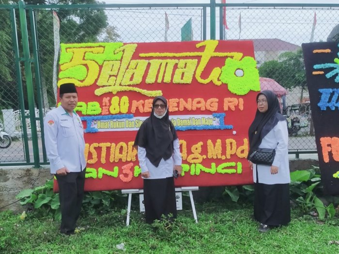 Selamat Hari Amal Bakti ke-80 bagi seluruh keluarga besar Kementerian Agama, khususnya PTK MAN 3 Kerinci di bawah kepemimpinan Ibu Hj. Tistiarni, S.Ag, M.PdI. Semangat ini terus menginspirasi untuk pengabdian yang lebih baik. Kehadiran PTK MAN 3 Kerinci dalam upacara tersebut juga mencuri perhatian dengan keseragaman pakaian adat dan seragam resmi yang dikenakan, mencerminkan kedisiplinan serta identitas korps yang kuat.