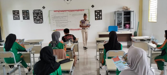 Manega Kerinci - Madrasah Aliyah Negeri (MAN) 3 Kerinci menerima kunjungan sosialisasi dari tim Akademi Maritim Sapta Samudra (AMSS) Padang pada hari ini. Kegiatan ini berlangsung di aula utama madrasah dan bertujuan memberikan informasi serta gambaran luas mengenai peluang karier di bidang kemaritiman kepada para siswa kelas XII yang akan segera lulus.