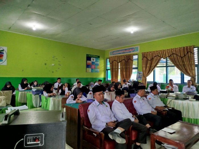 Selanjutnya, Kepala Tata Usaha, Mat Syukur, SKm, memaparkan evaluasi kinerja tenaga kependidikan. Ia menekankan pentingnya kedisiplinan administratif, pengelolaan berkas yang tertib, serta optimalisasi layanan kepada siswa dan orang tua. Sinergi antara bagian administrasi dan tenaga pendidik dinilai sangat penting untuk menciptakan sistem sekolah yang efisien dan responsif terhadap kebutuhan warga madrasah.