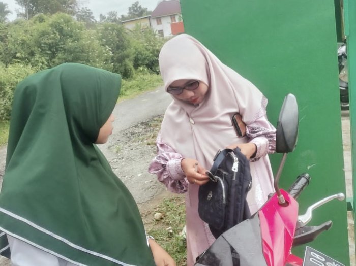 Pemeriksaan yang dilakukan meliputi kelengkapan atribut seragam, kerapian rambut, hingga isi tas siswa. Bapak Abdul Latif dan Bapak Abdul Malik secara teliti memeriksa perlengkapan sekolah yang dibawa siswa, sementara Ibu Rosnayenti dan Ibu Zulpaida memberikan arahan langsung mengenai pentingnya menjaga penampilan dan perilaku sesuai identitas siswa madrasah.